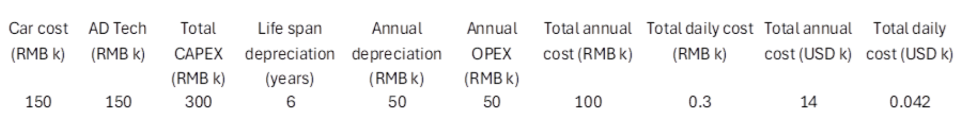 Figure F. Autonomous vehicle unit cost for a Chinese autonomous mobility company