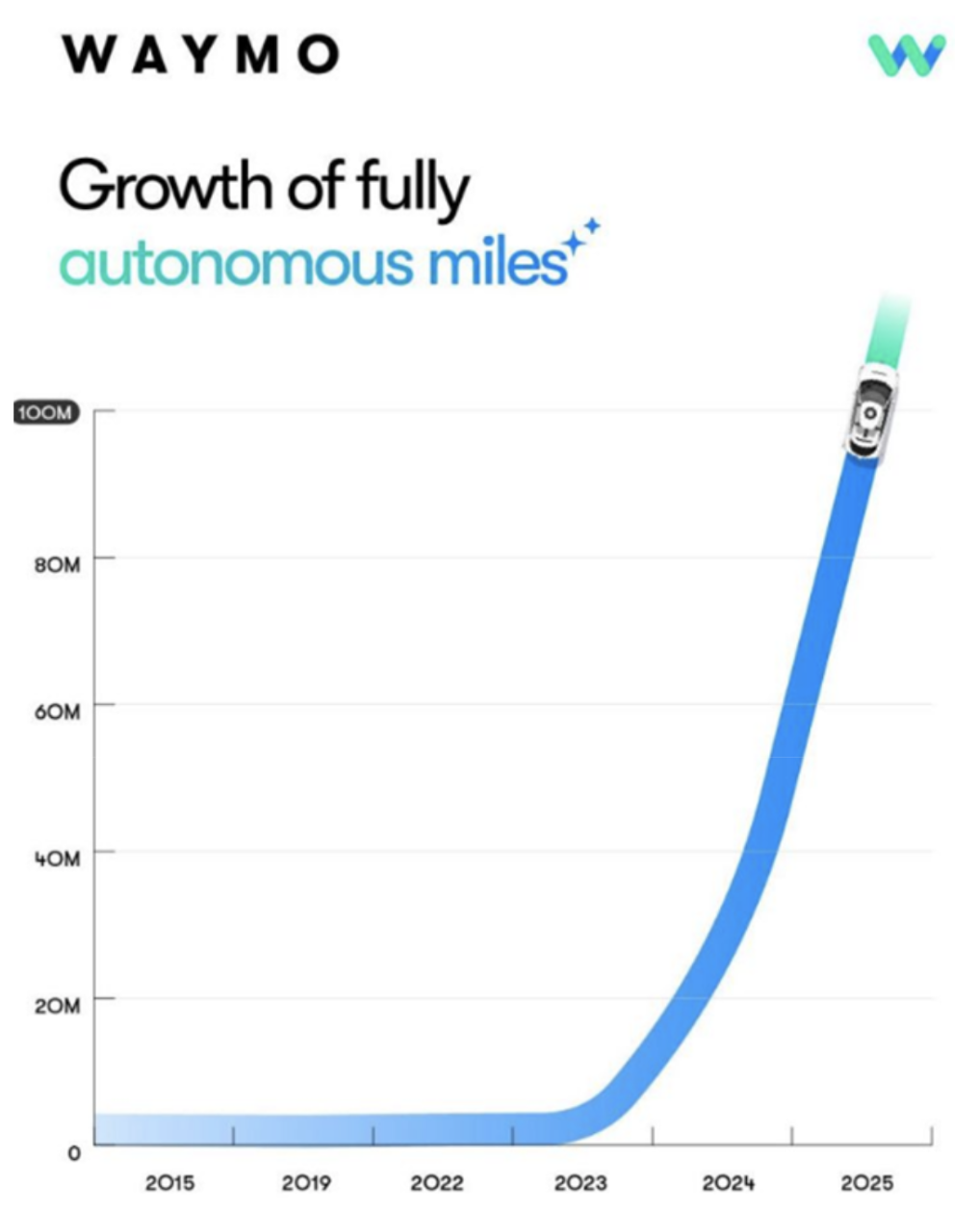 In 2025, the autonomous vehicle (AV) race accelerated sharply. Waymo’s weekly rides increased more than fivefold in just under a year, putting it neck and neck with China’s Apollo Go in cumulative autonomous miles. Meanwhile, Tesla launched its robotaxi pilot mid-year and is currently gearing up for mass production of its Cybercab, targeting 2 million units annually.