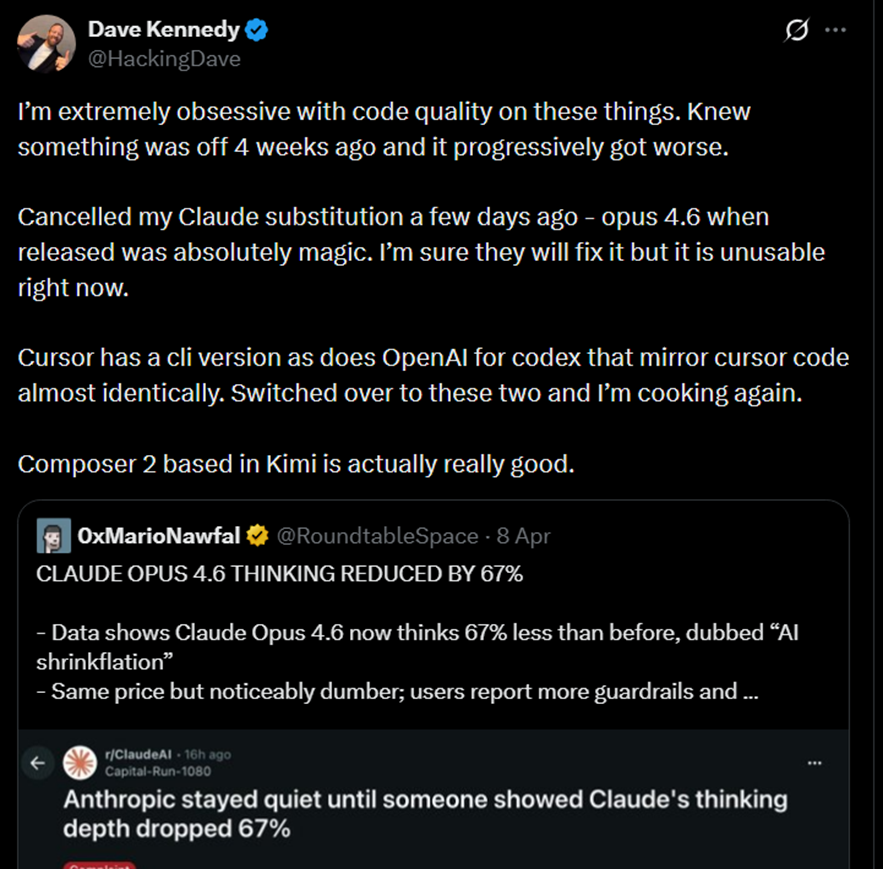 Figure 5: High-profile Claude user cancelling his subscription due to degraded output quality